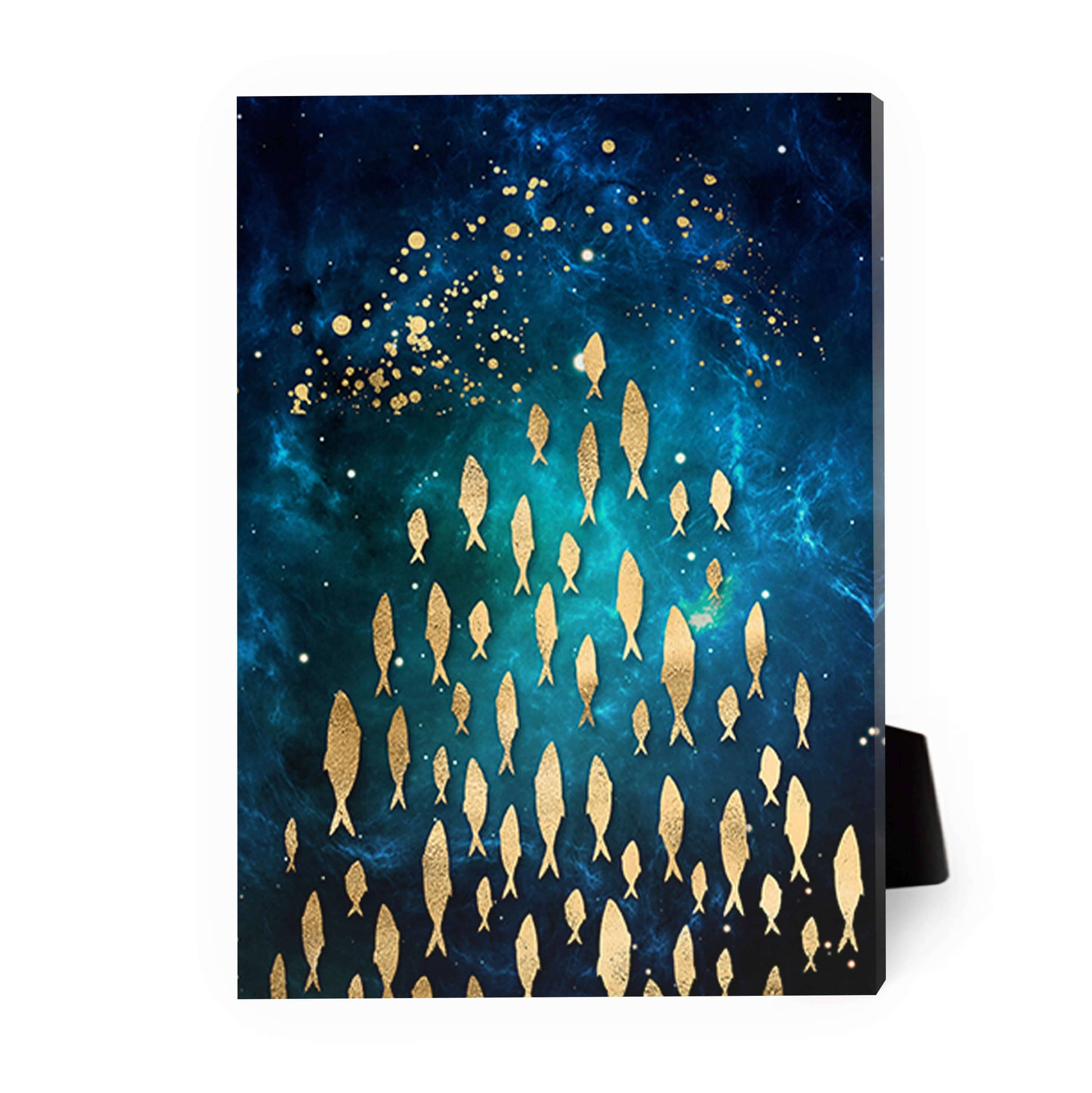 Stunning Gold Fish Schooling in Cosmic Blue Ocean Oil Painting