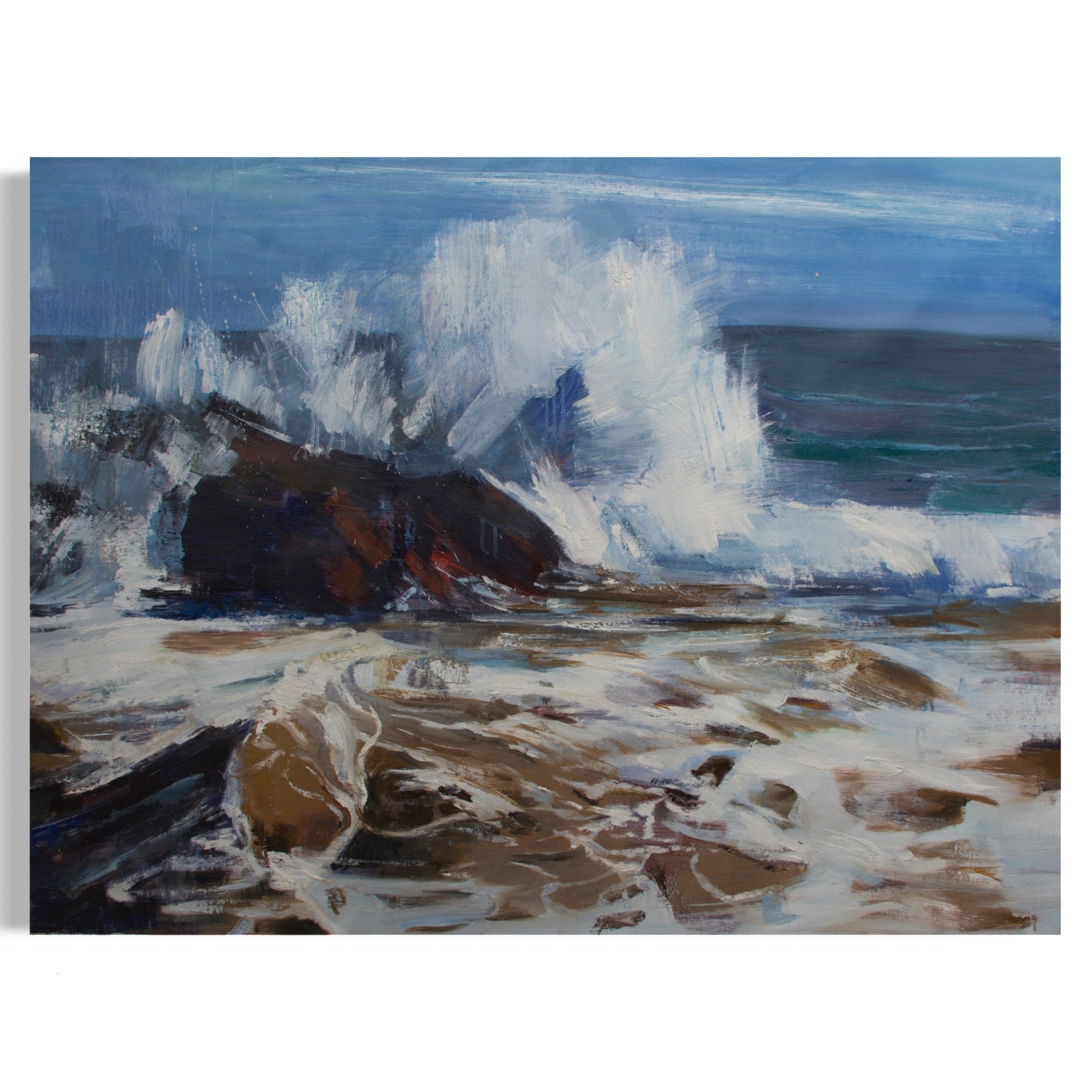 Dynamic Seascape Oil Painting with Waves and Rocks
