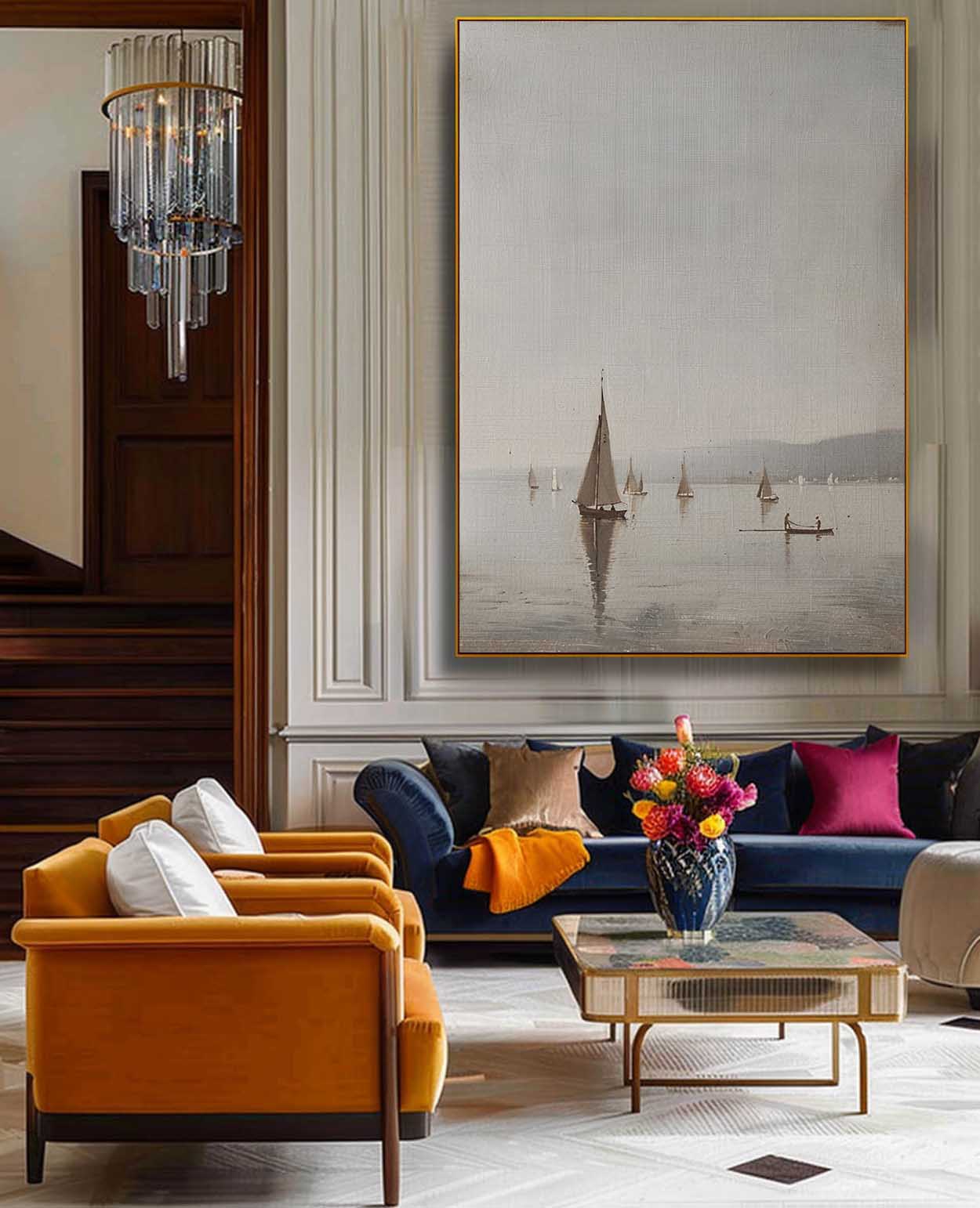 Discover the serene beauty of our Vintage Seascape Oil Painting, featuring enchanting sailing boats gliding over calm waters. This stunning artwork captures the tranquility of coastal life, making it a perfect addition to your home decor. Immerse yourself in timeless maritime charm and elevate your space with this exquisite piece that evokes peace and nostalgia.