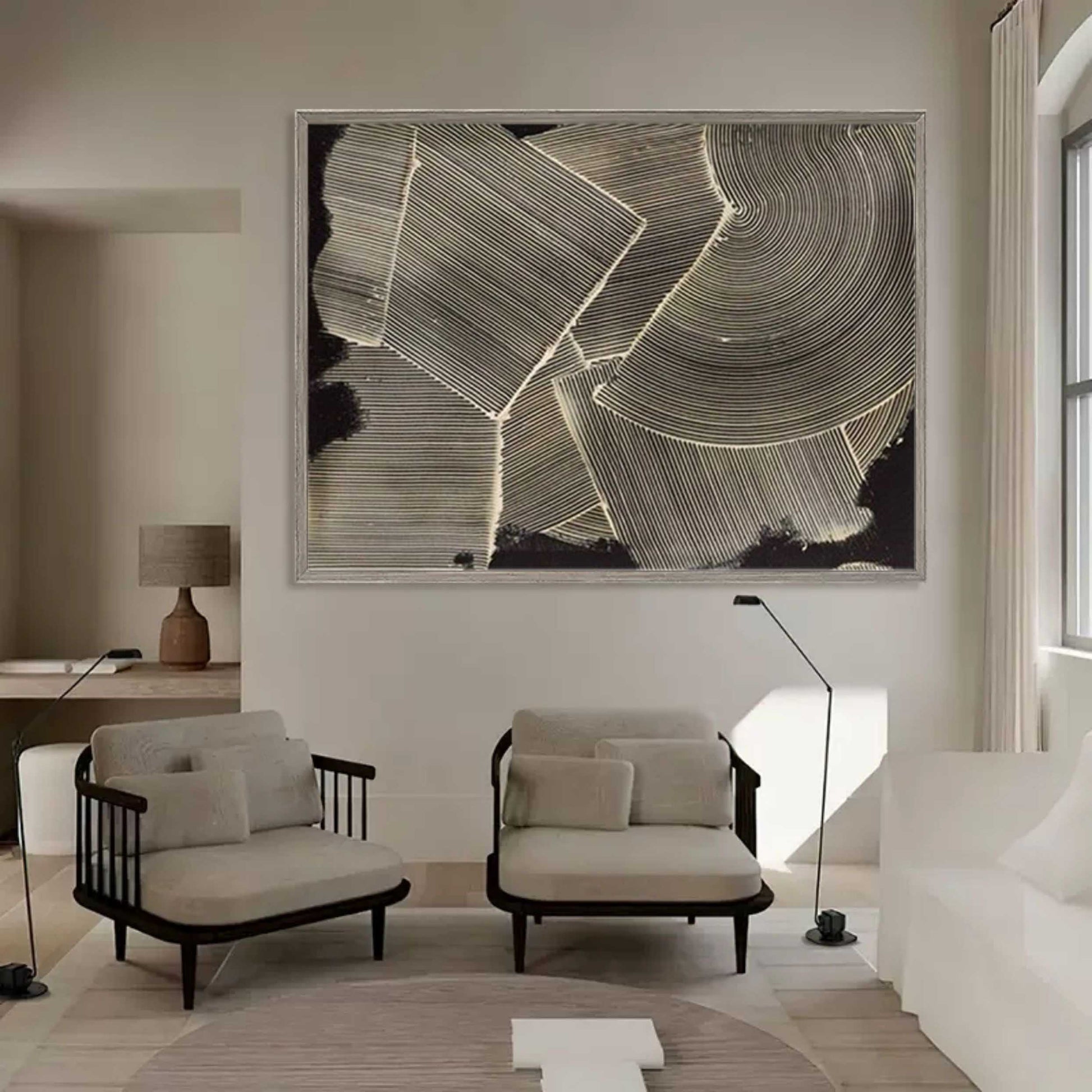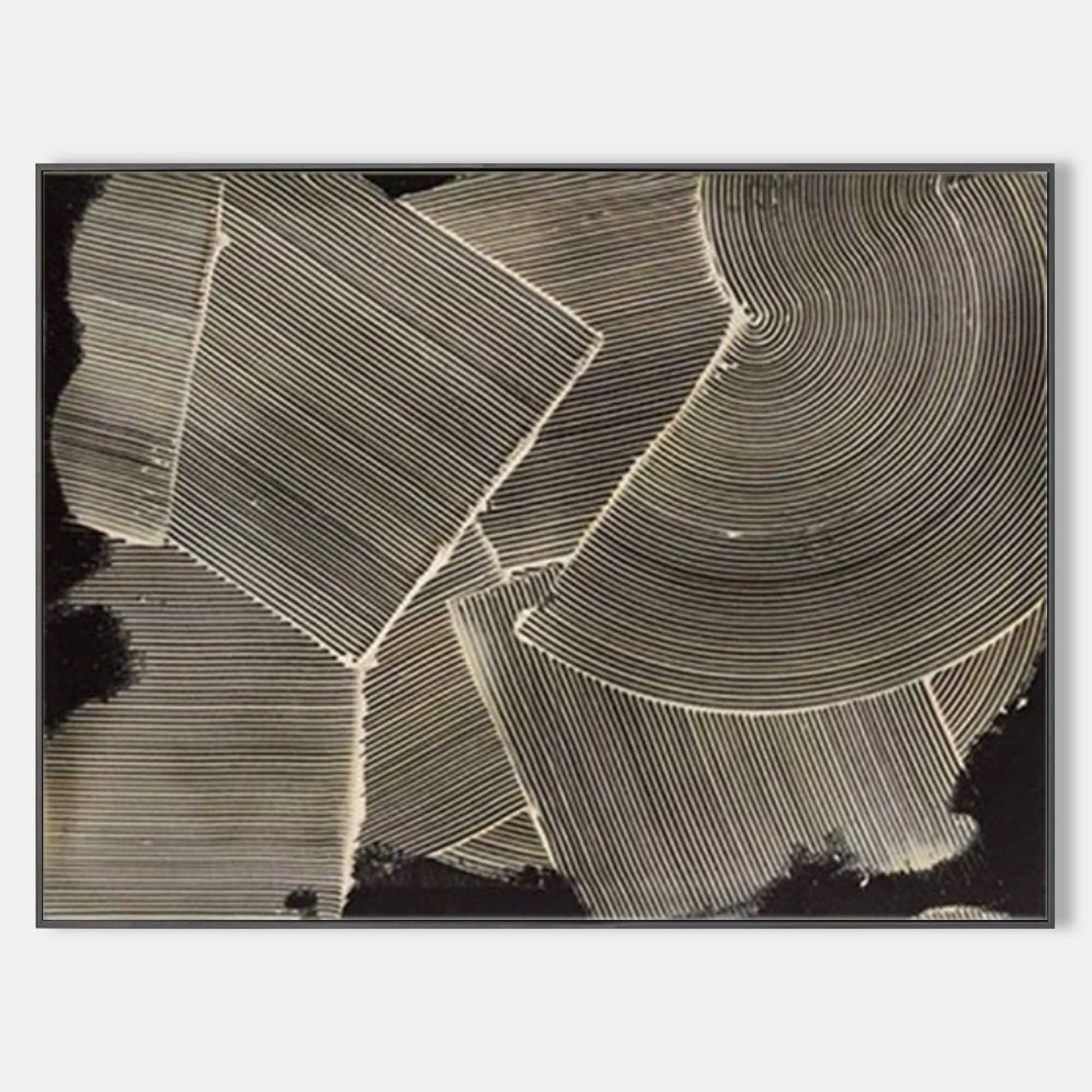 Geometric Black and White Oil Painting for Modern Wall Decor
