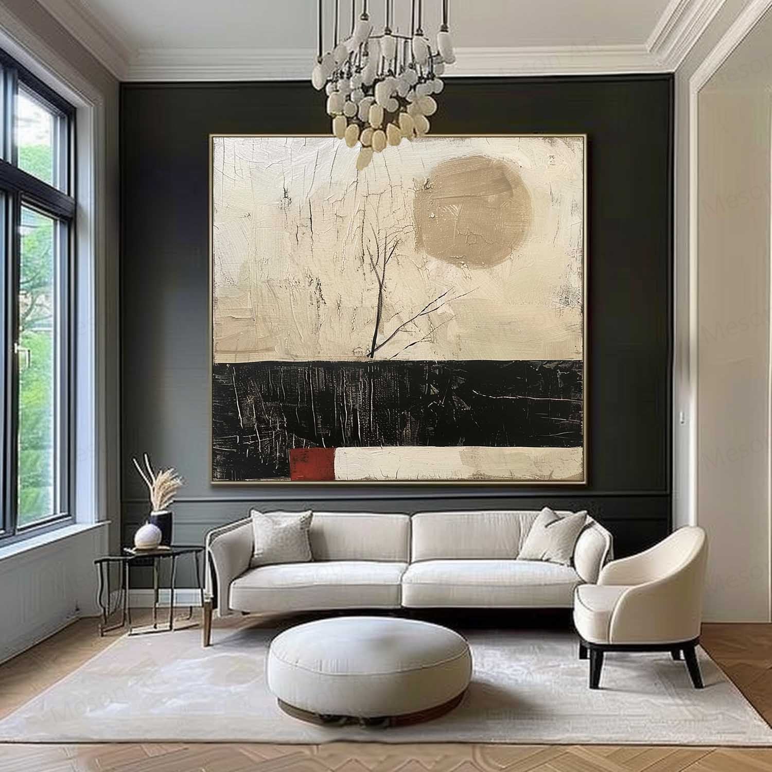 Serene Abstract Oil Painting with Minimalist Landscape and Earthy Tones Decor