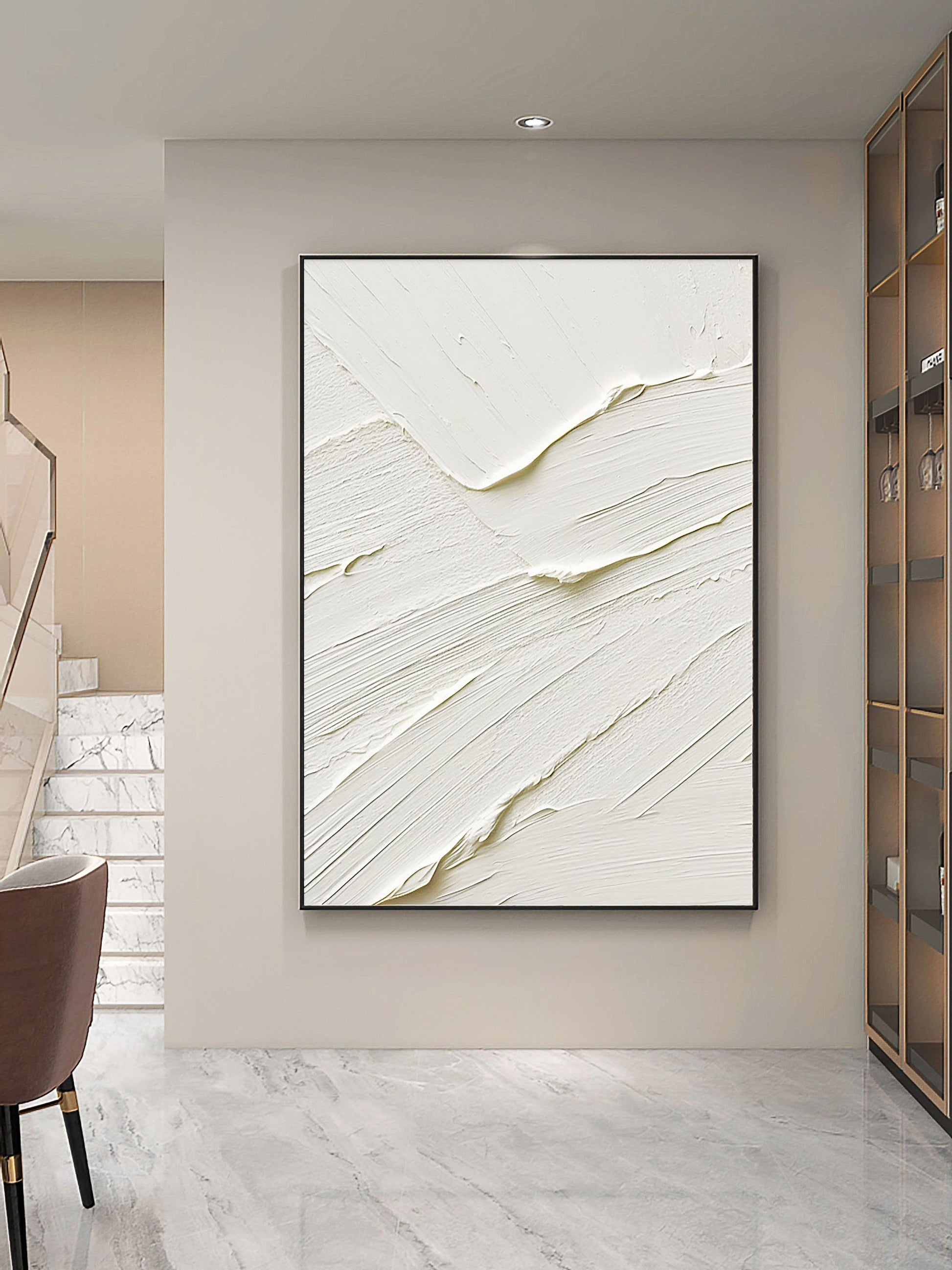 Elegant White Abstract Oil Painting for Modern Home Decor and Minimalist Aesthetics