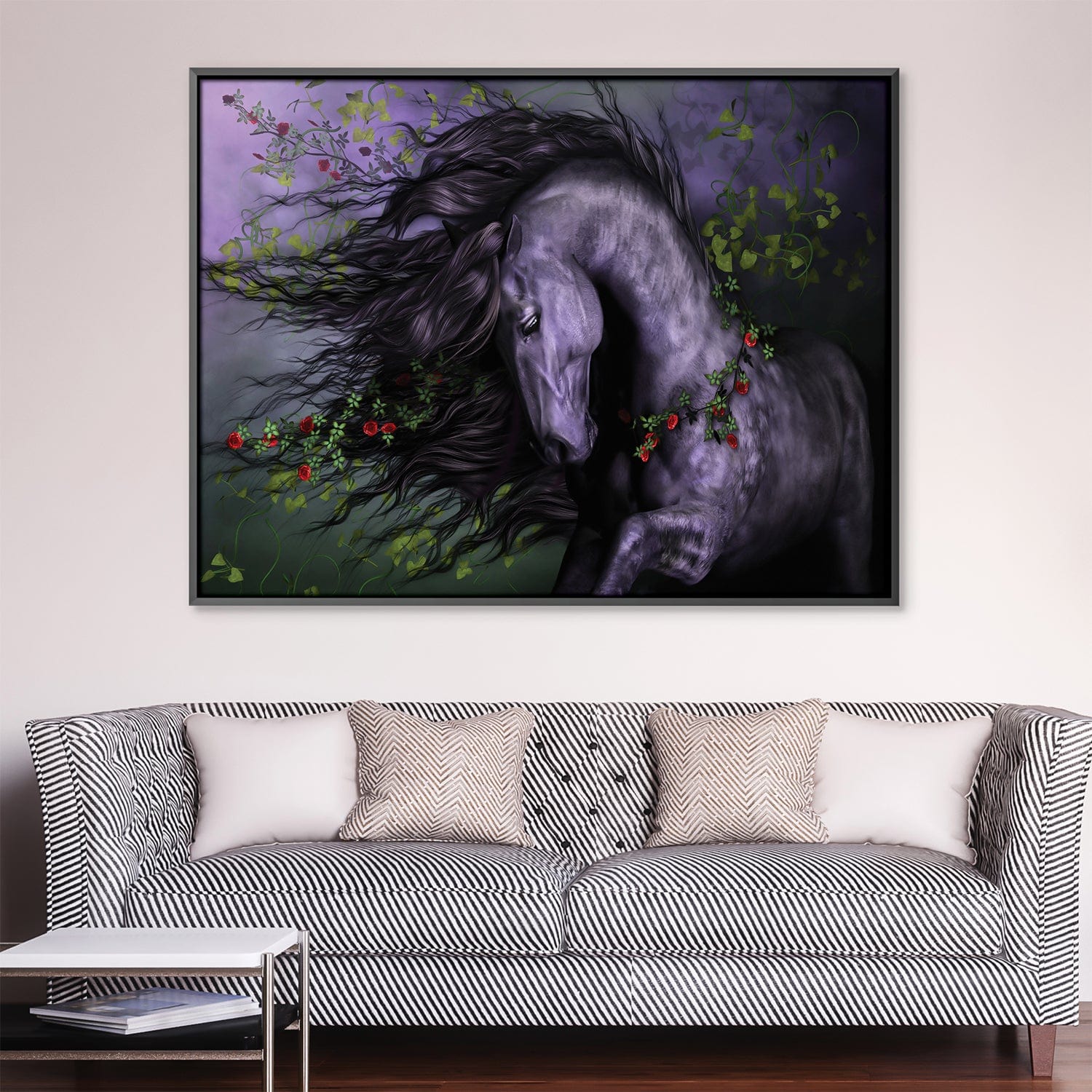 Transform your space with our stunning oil painting of a majestic black horse adorned with vibrant wild roses. This exquisite floral artwork adds a touch of elegance and nature to your home decor, making it a perfect centerpiece for any room. Ideal for horse lovers and art enthusiasts alike, this captivating piece brings beauty and sophistication to your walls. Discover the perfect blend of artistry and nature today!