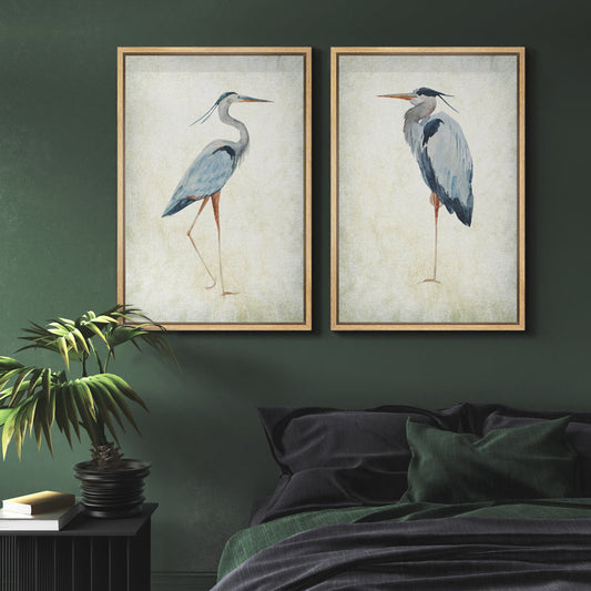 Elegant Blue Heron Bird Art Set for Coastal Beach Home Decor - Framed Wall Prints