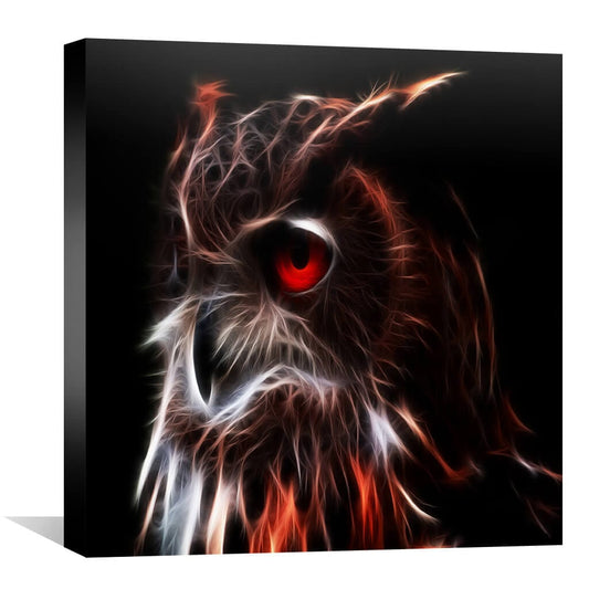 Majestic Owl Oil Painting with Striking Red Eyes and Fiery Details